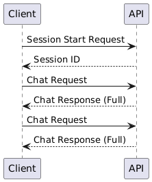 A basic chat session starts with starting a session. This will create a new session in the service and return a Session Id for future reference. Then, each time you create a Chat Request, the same Session Id should be passed with the request. In a basic chat request, Assistant Service will compose and then return the full response.